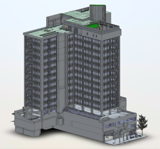 Scan Size: All 15 internal floors, rooftop, and exterior of the 50-year-old office building; structural elements including beams, columns, walls, floors, windows, and doors
